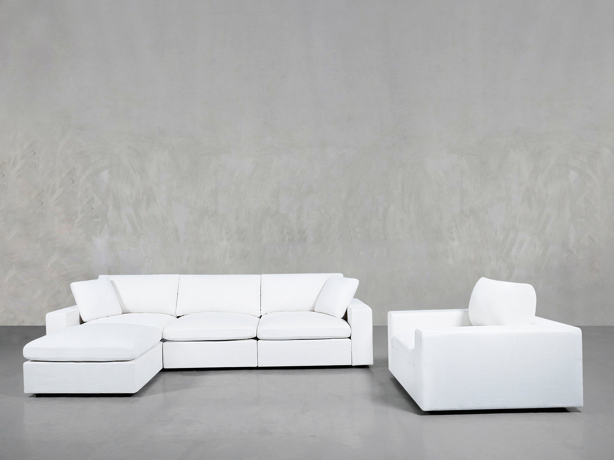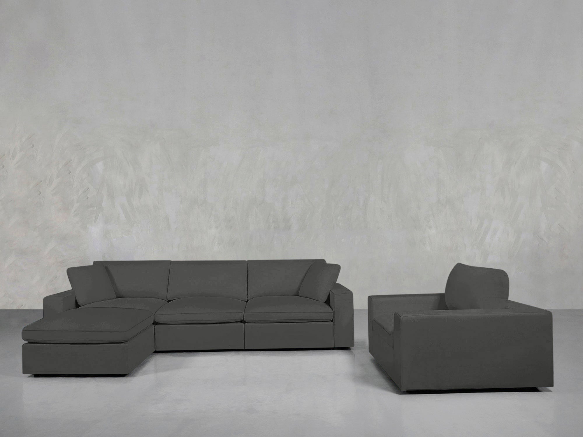 Our simple modular system features 4 core components - a Corner Left seat, a Corner Right seat, an Armless Seat, and an Ottoman - all of which can be arranged into any configuration to perfectly fit your home.