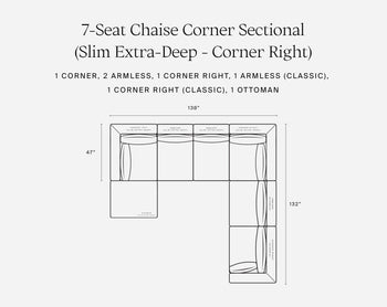 Looking for a narrower configuration for your space? Visit a showroom or reach out to our Sales team at sales@7thavenue.co to design custom configurations with widths of 78" / 108" / 116" / 154" / 162".