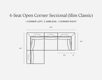 Our simple modular system features 4 core components - a Corner Left seat, a Corner Right seat, an Armless Seat, and an Ottoman - all of which can be arranged into any configuration to perfectly fit your home.